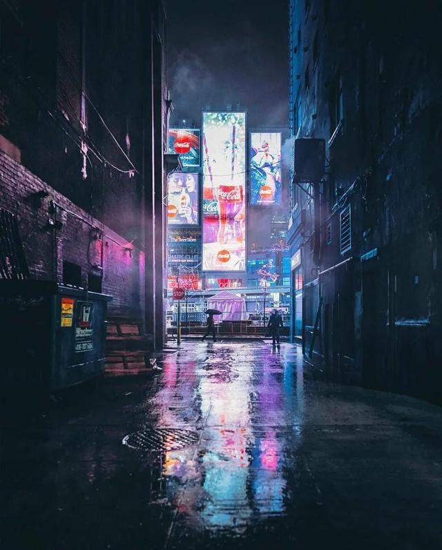 只要用手机随意拍下城市一角,搭上青蓝色配洋红色的「 赛博朋克滤镜 」,发微博的时候文案配个 Cyberpunk,齐活儿。