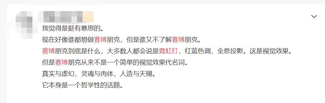诚然,因为开发团队 CDPR 的好名声让赛博朋克些微走出了科幻的圈子,在互联网上得到了大量的关注,却也间接造成了开头提到的「 赛博朋克 」泛滥所带来的新旧爱好者的矛盾。