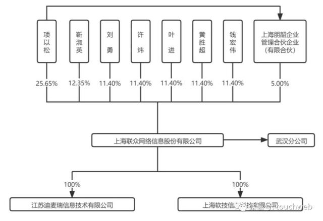 IPO前,项以松、刘勇、许炜、叶进、黄胜超和钱宏伟直接持股比例分别为 25.65%、11.40%、11.40%、11.40%、11.40%、11.40%,项以松通过上海朋韶间接控制公司5%的股份。