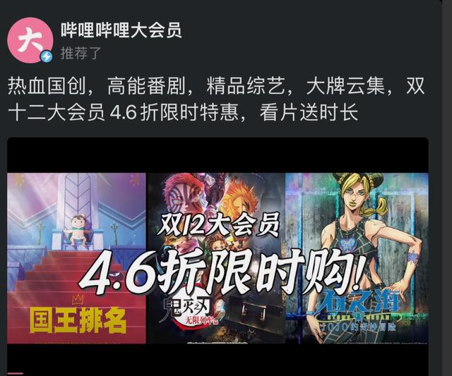 最近我收到了B站大会员的双十二的广告推荐,这种动态是推荐给已经有大会员的会员的,应该是有针对性的推荐,不同人看到的页面可能不一样。