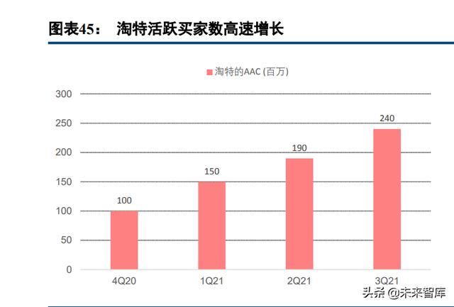 用户数增长进入不同阶段,下沉市场仍有红利。在用户增长方面,阿里和京东向下,拼多多向上。阿里活 跃买家数增速从 2020 年末以来显著反弹,AAC 在四季度反超多多,很大程度源于淘特的贡献,当前阿里低线 城市用户占比仍低于多多,存在理论下沉空间,但整体空间有限。未来潜在的增长动能除了市场下沉外,还有 互联网互联互通的进一步深入,目前微信对淘系的开放程度局限于微信群开放,但整体用户体验较差,对淘系 的增量用户贡献非常有限,如若未来小程序端进一步开放,预计能为淘系用户带来个位数增长,但预计这部分 差异用户也多来自下沉市场。