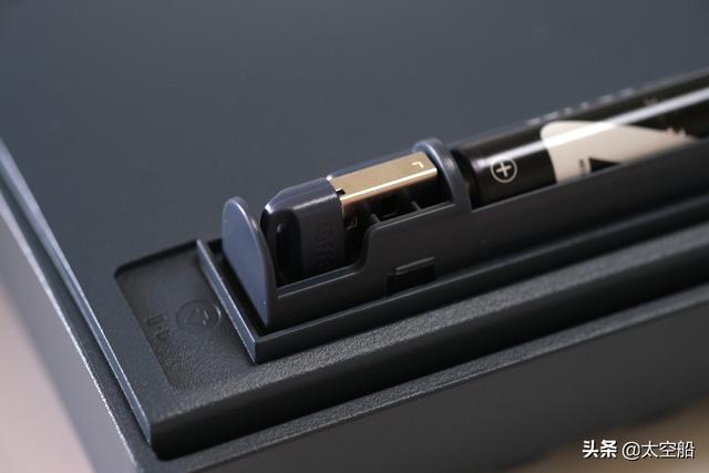 在电池仓的旁边还有一个收纳仓,它是用来收藏2.4G无线接收器的,需要用时取出,反之放回,这样就不用担心这小配件容易丢失了。