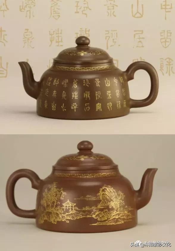▲清乾隆 御制紫砂描金山水诗文圆壶