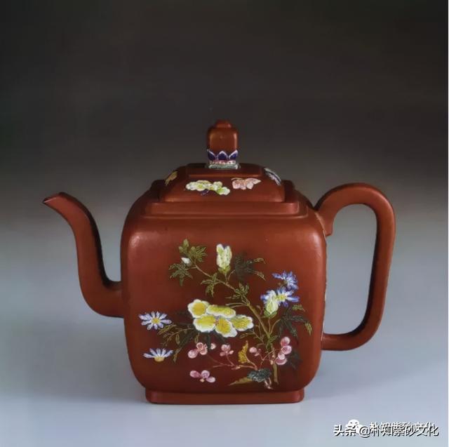 ▲康熙 紫砂胎珐琅五彩花卉茶壶