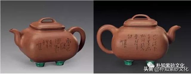 嘉庆、道光年间,文人参与制壶,是紫砂壶艺突出的时代特征。虽则前代已有,但唯此时期独盛, 而且成为紫砂壶艺的主流,给予壶艺发展以极大 的推进。首创者为嘉庆时溧阳知县陈曼生,后继 者有瞿应绍、邓奎、朱坚、乔重禧等一批文人。这类紫砂茗壶的壶底部、壶盖内、壶身上常留下 定制者、制作者及刻书画铭文装饰者的名款。