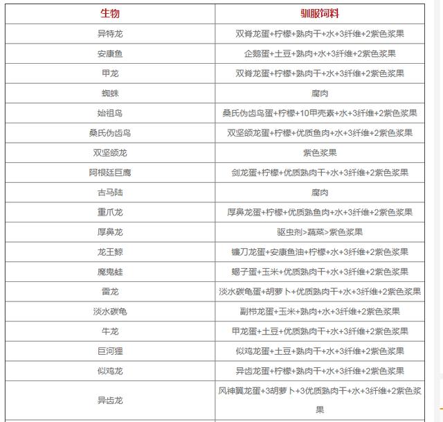《方舟:生存进化》手机版饲料配方一览, 方舟生存进化手游 有哪些饲料,饲料的配方是什么呢?今天小编为大家整理了游戏中所有恐龙生物的驯服饲料食谱,快来收藏起来吧!