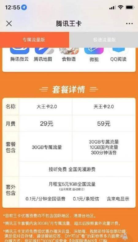 近日,腾讯大王卡最低月租由19元/月提高到29元/月,套餐内相关权益没有变化,套餐包括30GB专属流量,月租宝5元1GB全国流量。原大王卡套餐于 2022 年 1 月 1 日起停止线上推广。