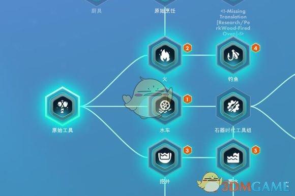科技的研究顺序如上图,研究顺序也可以参考上方的顺序,主要就是水车先解决房屋用水、然后就要有熟食可以吃(降低食物消耗),接着可以不用喝肮脏的海水(避免得病),然后人口增加就要开始使用钓鱼补充食物,最后就是为冬季用水打好基础的水库科技。