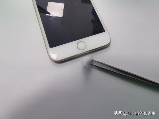 2、待手机关机后,将棉签上的药棉撕下,并使用镊子送入尾插内。如果条件允许,药棉上可沾取少量的精密电子清洁剂。