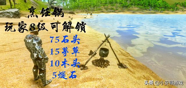 ①烹饪锅的制作:玩家等级达到8级可以解锁学习制作烹饪锅(制作烹饪锅需要材料/75石头+15茅草+10木头+5燧石)
