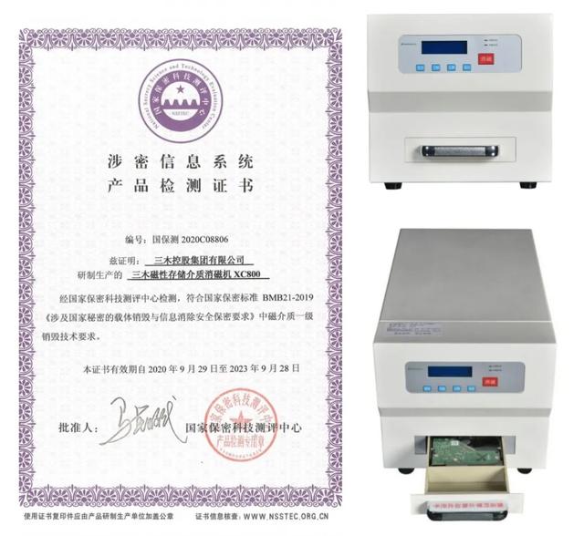 三木磁性储存介质消磁机(磁介销毁设备)XC800 是一款标准腔口消磁机,能够快速彻底销毁磁性存储介质上信息的设备,销毁介质包括硬盘、软盘、磁带和磁卡等,采用恒流充电方式、具有自动安全放电装置功能,该设备通过国家保密局信息安全产品的鉴定。