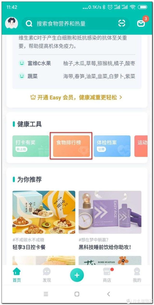 首页还有“食物排行榜”,列了不同分类下的食物,例如比较重要的低GI主食、低热量水果等。