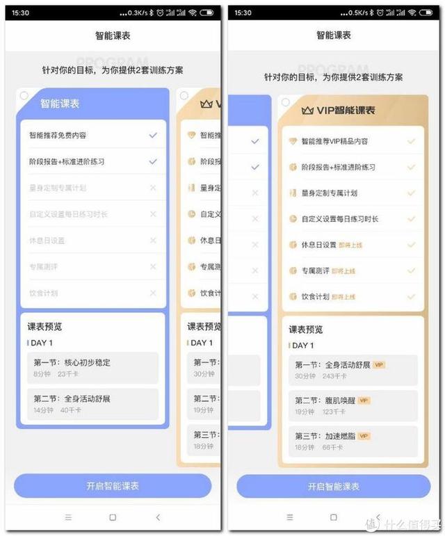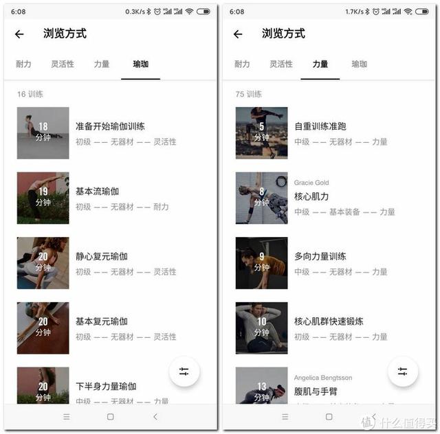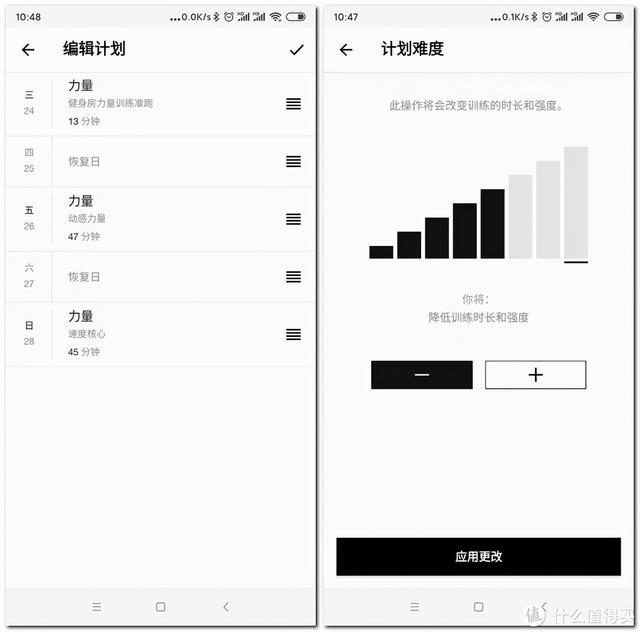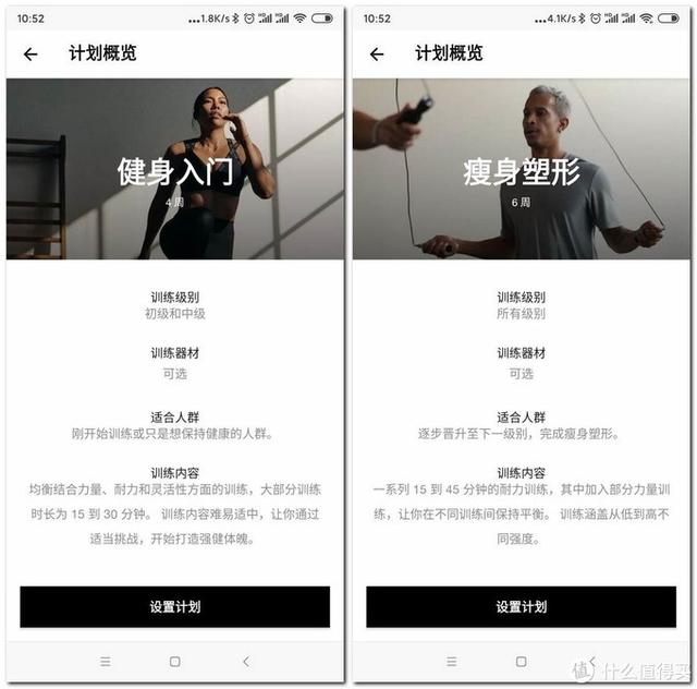 每类计划的动作、时长、强度、频率都不同,都是科学组合出来的,不用操心选哪个课练多久,还有恢复日和运动后自我感觉强度后的调整,可以说完完全全的私教一样的编排了,单练非常的爽。