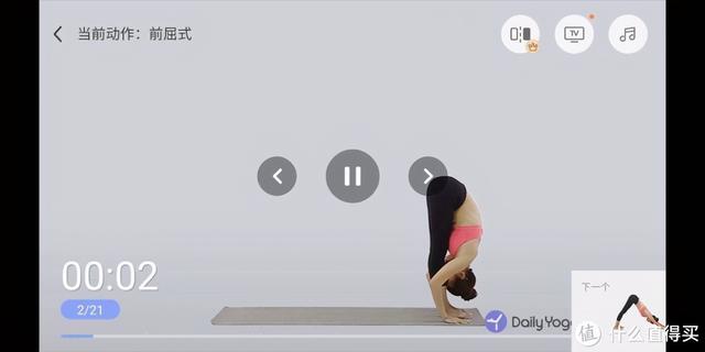 教练的嗓音和keep有点类似,但声线更软一些,所有的注意事项都会在语音里进行提示,轻触屏幕的任意区域可以快进到下个动作。