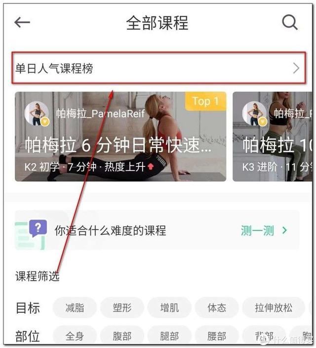 如果没有锻炼方向,想随大流先试试练练看看,点下顶部的“单日人气课程榜”