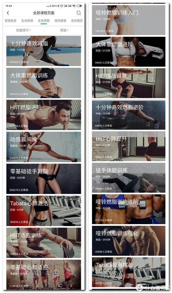 和其他的减脂课程、HIIT训练等。