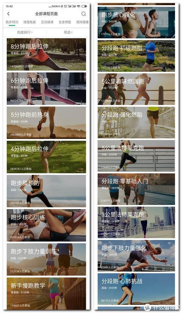 也有针对跑步的相关课程,跑前热身、燃脂跑、法特莱克跑、跑后拉伸等等。