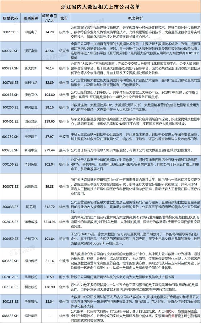 以下为同顺-异动君整理的浙江省内大数据相关上市公司名单: