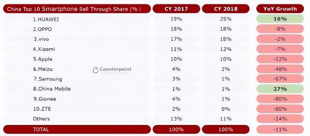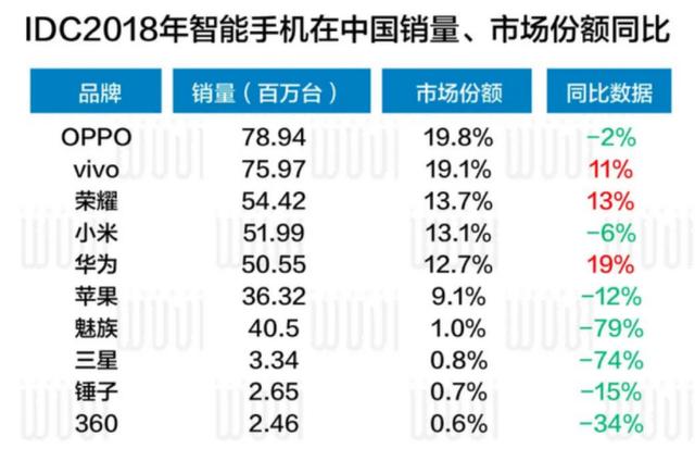 当然,虽然2018年荣耀10打了小米8的提前量,荣耀play把麒麟970卖出了1999,荣耀Magic2针锋相对,荣耀8X颠覆发布,但是小米在中国区的份额还是相比2017年增加了一个百分点,从11%涨到了12%。