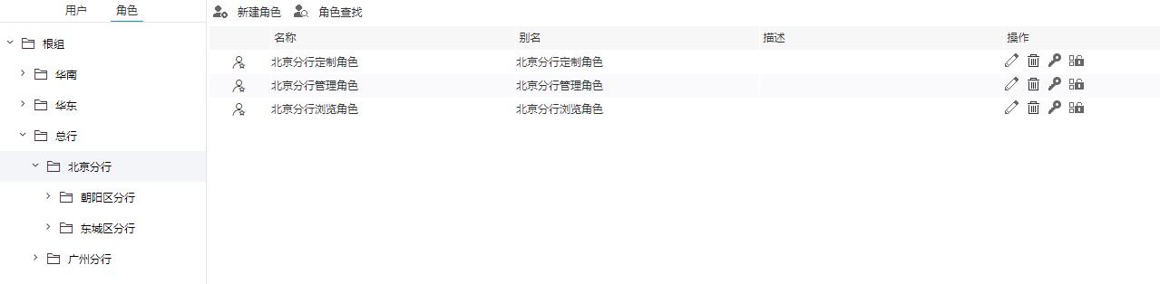 2.为每个机构,建立机构的管理员角色、定制角色及浏览角色。如: