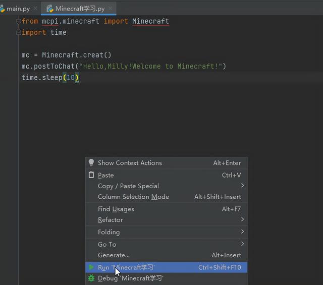 现在我们已经可以用Pycharm进行编程了,但是要想控制《我的世界》,我们还需要安装我的世界,并且让它跟Python连接。