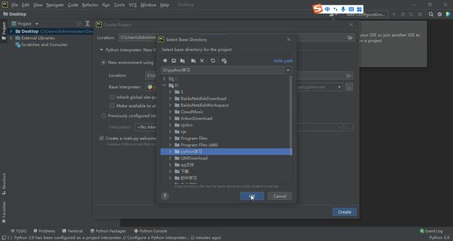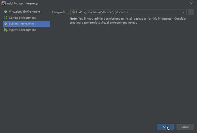 选择"system interpreter",
