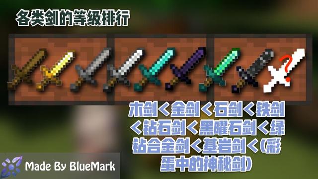 但基岩装备还不是最高等级!!!组件中还隐藏了三个彩蛋物品,真正的逆天神器就是这个彩蛋哦~创造模式背包以及指令都无法得到它们(悄悄的告诉小可爱:试试去找村民玩耍吧~),目前各武器的等级排行如下