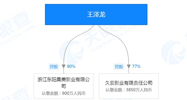 根据权益变动报告书显示,王泽龙在浙江东阳昊美影业有限公司(简称东阳昊美)担任执行董事、总经理职务 ,与此同时王泽龙也是公司的控股股东,持有公司90%的股权。除此之外,根据工商数据穿透得知,王泽龙还掌控着久紫影业有限责任公司77%的股权。