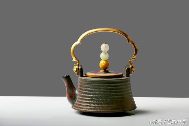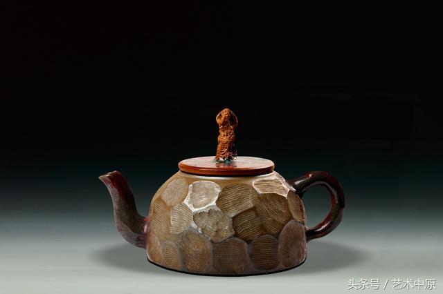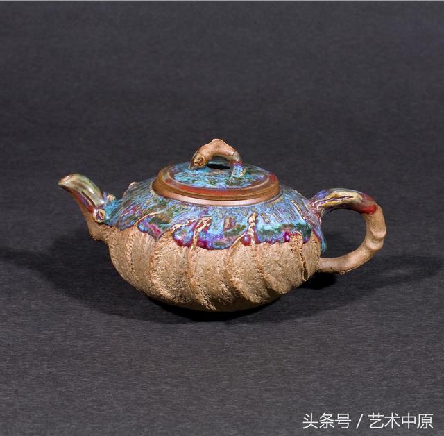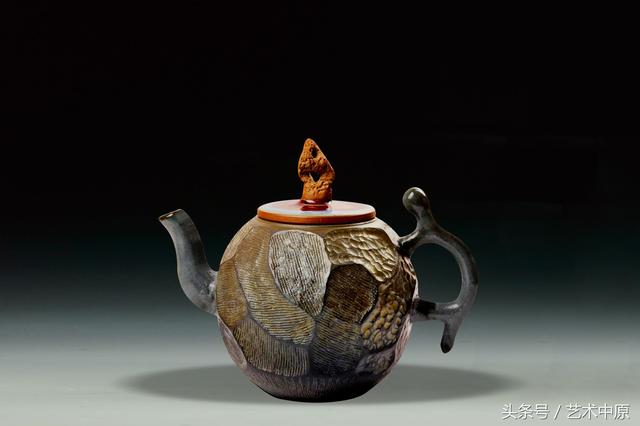 《唐风钧韵》既古朴,又灵动高雅。壶体呈现出铁壶一样的金属质感,采用了独特的陶瓷制作手法加以装饰。