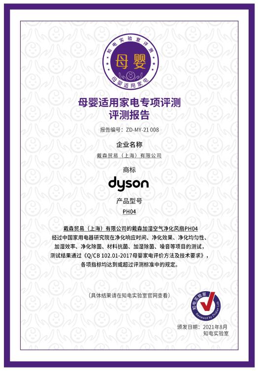 作为通过母婴家电标准的产品,戴森加湿空气净化风扇 PH04在测试中表现出不凡的实力,不仅为母婴等敏感体质人群提供了有效的空气净化解决方案,更是为空净产品新形态的开发,迈出了很有意义的一大步。