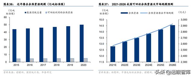根据前瞻网并依然按10%保守估计,考虑余热资源中有50%高温烟气余热回收容易,预计2021年我国余热资源潜在利用价值超2500亿元,到2026年将达2930亿元。