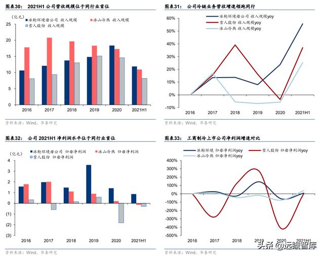 主营为工商业制冷业务,2016~2020年收入从10.6增长到18.4亿元,复合增速15%,2021H1本部收入11.89亿元,同比增长55.76%,公司本部收入快速增长主要来自于冷链物流行业的持续发展,冷链物流行业集中度持续提升,公司作为工商业制冷压缩机龙头持续受益行业格局的优化,增速显著快于行业;同时,在双碳背景下,高耗能的冷库将加速淘汰,环保工质的制冷压缩机渗透率有望进一步提升,公司是氨和二氧化碳复叠工质压缩机龙头企业。