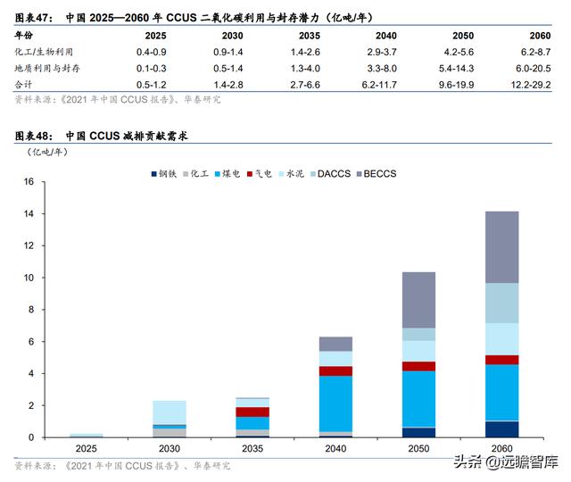 需求上,根据《2021年中国CCUS报告》的预测,预计2030年国内CCUS需求达2.30亿吨,2050年达10.25亿吨,2060年达 14.10 亿吨。