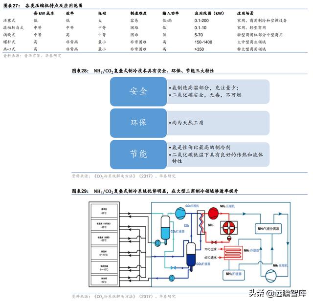 在大型冷库中,螺杆压缩机应用范围最广,/复叠式制冷技术具有安全、环保、节 能三大特性,已经成为了中国冷冻冷藏设备的主流技术,目前渗透率达40%-50%。