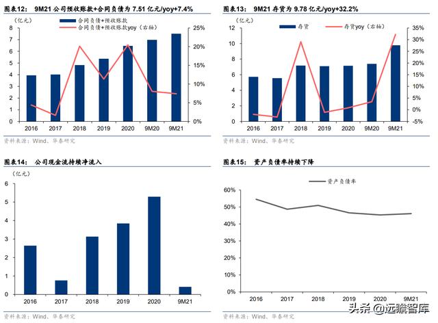 9M21公司预收账款+合同负债为7.51亿元/yoy+7.4%,存货9.78亿元/yoy+32.2%。