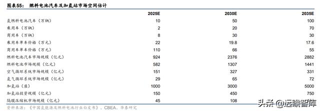 1)2025年我国FCV产量10万辆,2030年50万辆,2035年100万辆;2025年我国加氢站数量1000座,2030年3000座,2035年5000座;