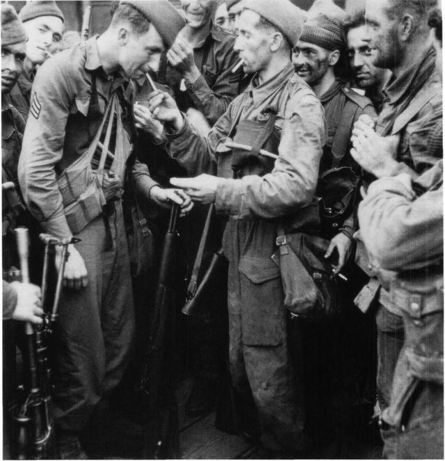 在突袭迪耶普行动失败后,返回的英国突击队员和美国游骑兵。
