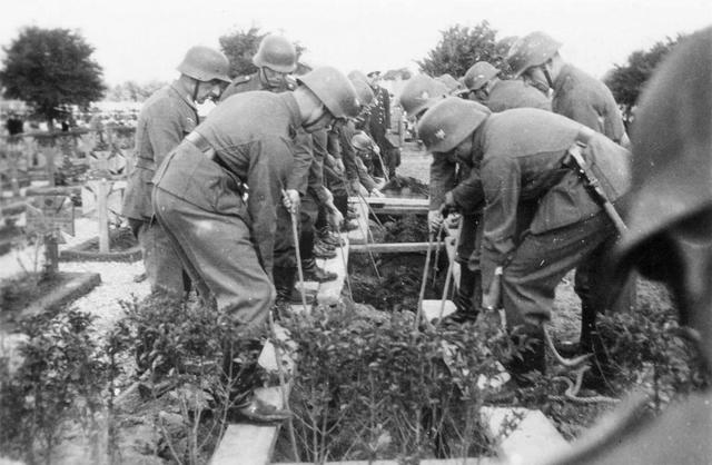 一队德军士兵正在下葬在迪耶普突袭战中阵亡的战友。