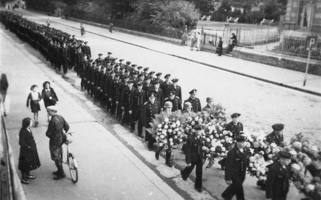 正在迪耶普市举行葬礼仪式的德国海军官兵。
