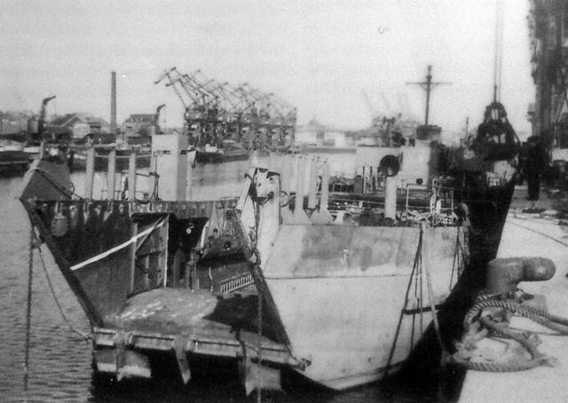 被德军俘获后停靠在迪耶普港内的英国TLC159号坦克登陆舰。