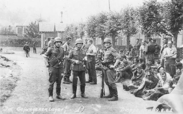 迪耶普市内,临时战俘收容点内的加拿大战俘。