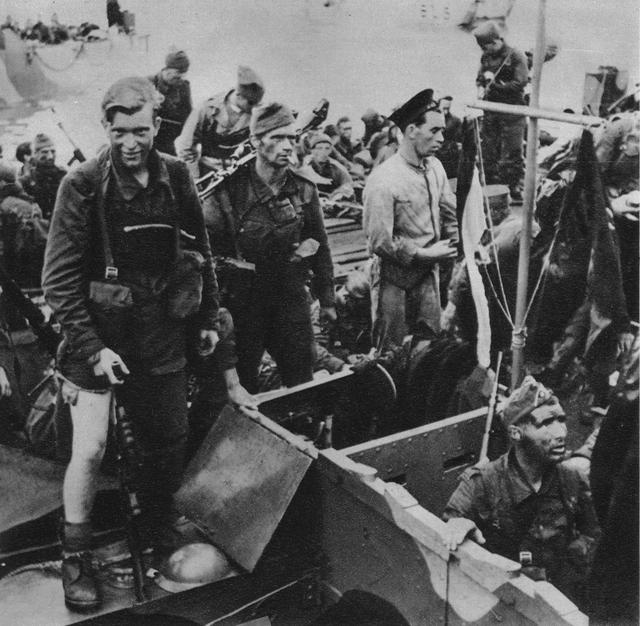 迪耶普突袭行动失败后,成功返回纽黑文港的英国突击队员们。
