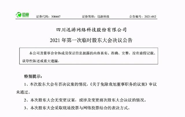 4月9日晚间,迅游科技发布公告表示,在公司2021 年第一次临时股东大会中,公司董事会审议通过了《关于免除章建伟先生公司董事职务的议案》。这也就意味着,迅游科技的创始人、法人、董事长章建伟被迫出局。