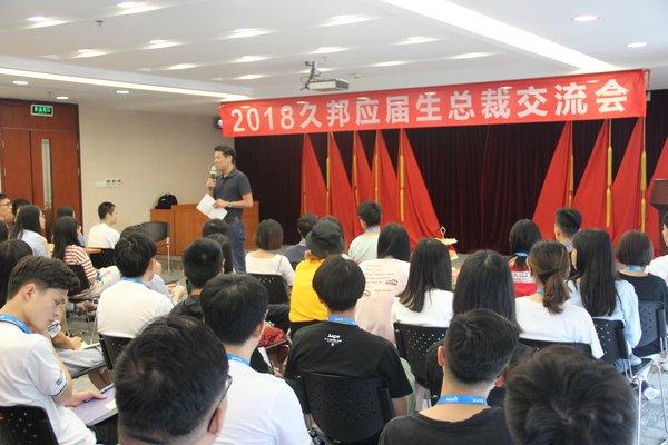 广州2018年8月15日电 -- 随着2018届校招进入尾声,近日,久邦GOMO总裁朱志与新入久邦的应届生们进行了一场面对面的交流。同学们也积极地与朱志先生进行交流提问。以下是现场提问与分享: