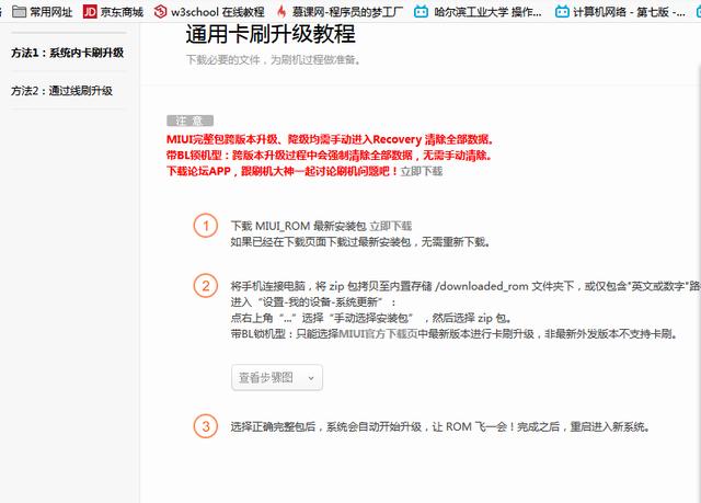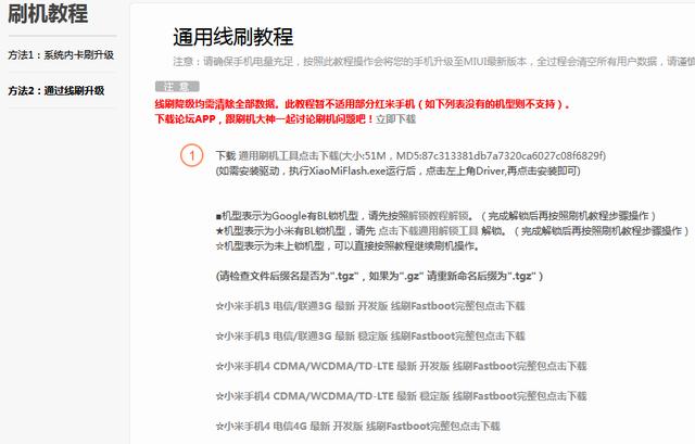 如图,官网给出了线刷教程,就在卡刷教程下面