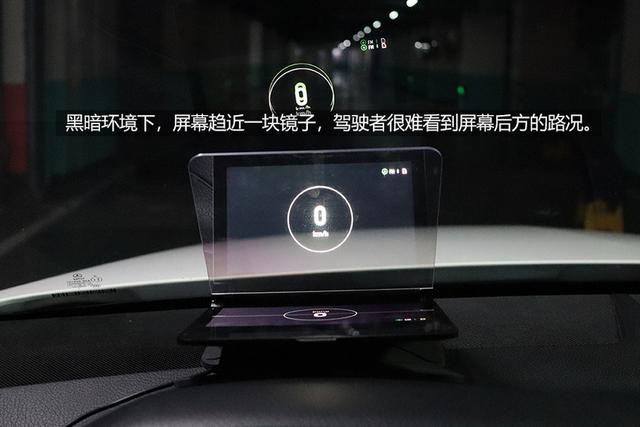 黑暗环境对屏幕的透光性考验更大,车外昏暗的光线难以穿透屏幕的反射镀层,而车内的HUD显示屏光亮要明显强于周围环境,此时屏幕便无线趋近于一面普通的镜子。这就会导致驾驶者无法看到HUD的画面后方的路况,对于夜间行车、特别是高速行车而言是极其危险的。