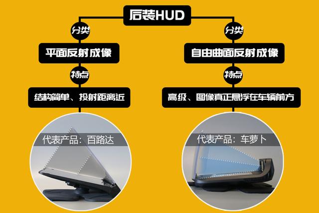 目前,后装HUD按照成像原理基本都是通过反射成像,反射镜片会有些区别。一类是比较简单的平面反射成像,成像距离比较近;另一类是相对复杂的自由曲面反射成像,可以将图像反射到较远的位置。
