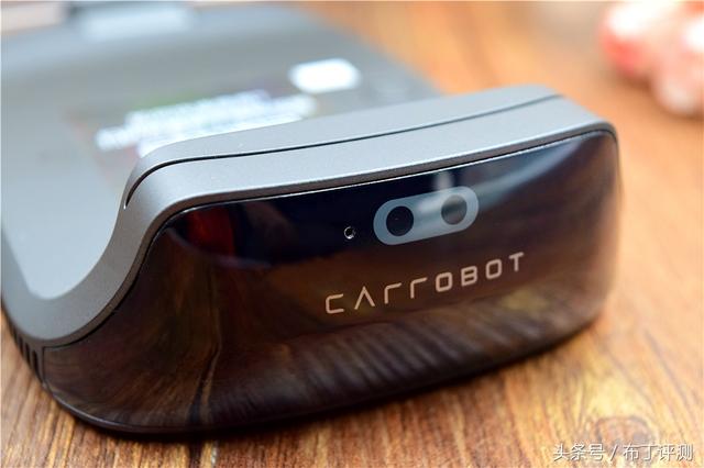 机身上的接口都被集中放到了朝向车头方向的一侧,拥有1个数据接口和1个有线外接Micro USB口,另外在左上方还有个复位孔;面向驾驶员方向的一侧,中间位置是个“Carrobot”的产品logo,另外还有个小孔,这是机器的拾音孔,用来接收用户的语音指令。