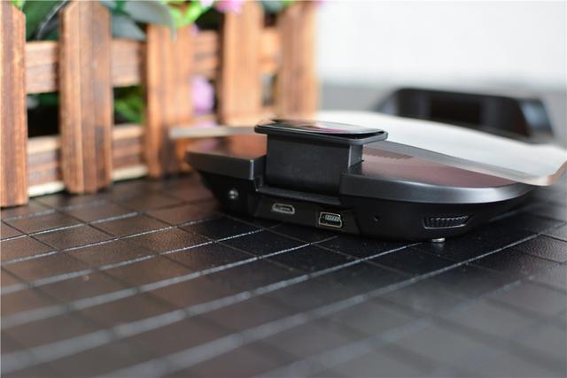 底座上具备了四个插口,使得可以和底座牢牢地连接在一起,当放在驾驶台上不会发生跌落的问题。