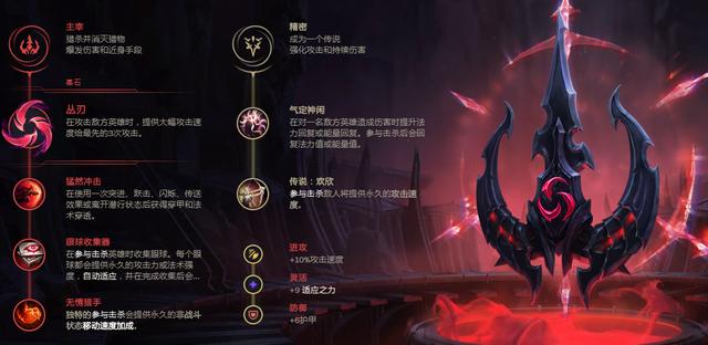 这一套丛刃流——丛刃+猛然冲击+眼球收集器+无情猎手+气定神闲+欢欣。这套天赋更偏向于爆发,在短时间内叠满E技能的层数,更快的打出全部伤害。